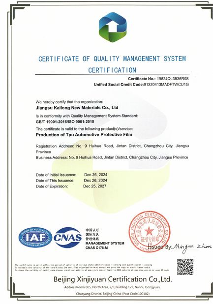 KDPPF'nin kalite kontrolüne olan bağlılığı, gelişmiş test ekipmanlarının ve stratejik araştırma ortaklıklarının kullanılmasında açıkça görülmektedir.KDPPF, boya koruyucu filmlerinin olağanüstü performans ve dayanıklılık sunmasını sağlarAracınızı güvenilir PPF ile korumak ister ya da KDPPF ürünlerinde bulunan gibi gelişmiş özellikler arıyorsanız, kaliteye olan bağlılığımız üstün bir seçim garanti eder.Daha fazla bilgi için ve KDPPF'nin tekliflerini keşfetmek için, resmi web sitelerini ziyaret edin ve yüksek kaliteli boya koruyucu filmlerinin aracınıza nasıl fayda sağlayabileceğini keşfedin.